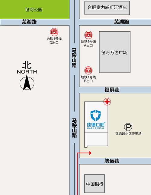 合肥市包河区佳德口腔门诊部地址:合肥市马鞍山路90号(万达广场南120米),有充足的停车位,“锦绣园”小区内停车,至佳德口腔前台拿停车卡。